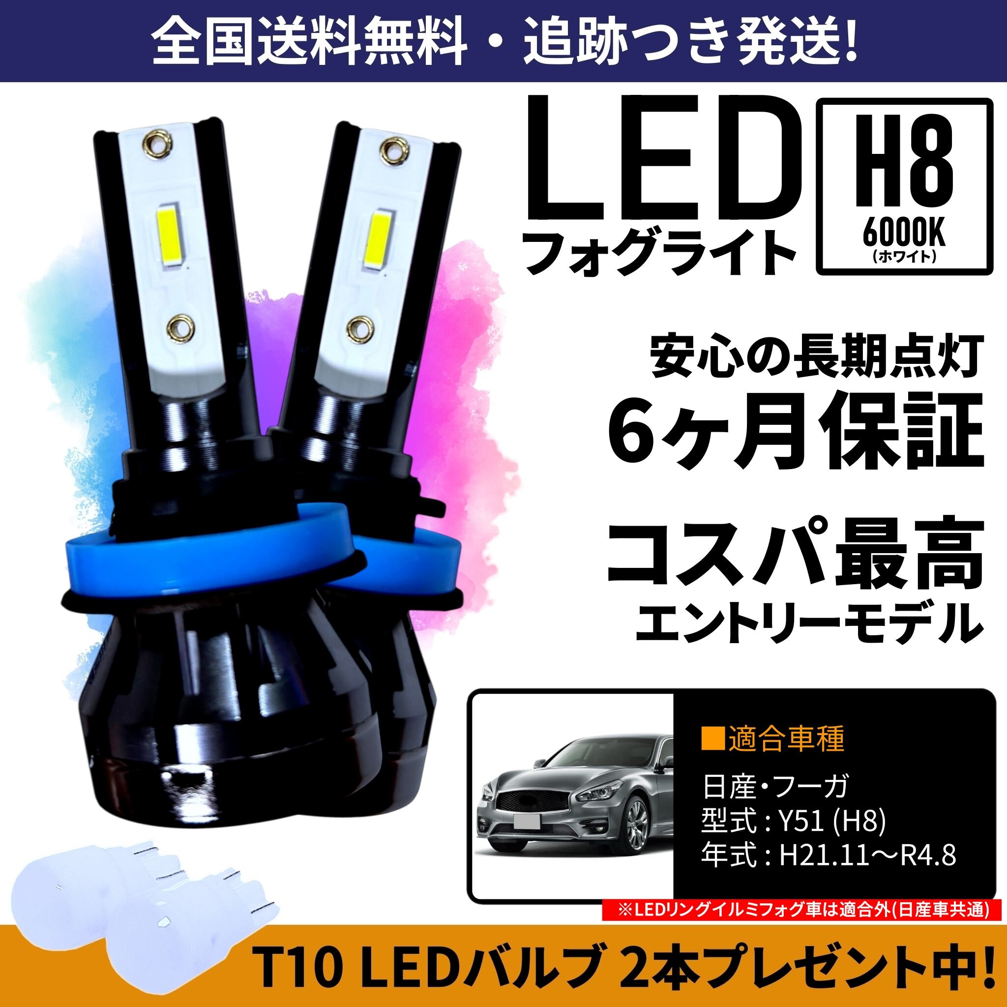 【送料無料】日産 フーガ Y51 LED フォグライト フォグランプ H8 ホワイト 6000K 保証付き