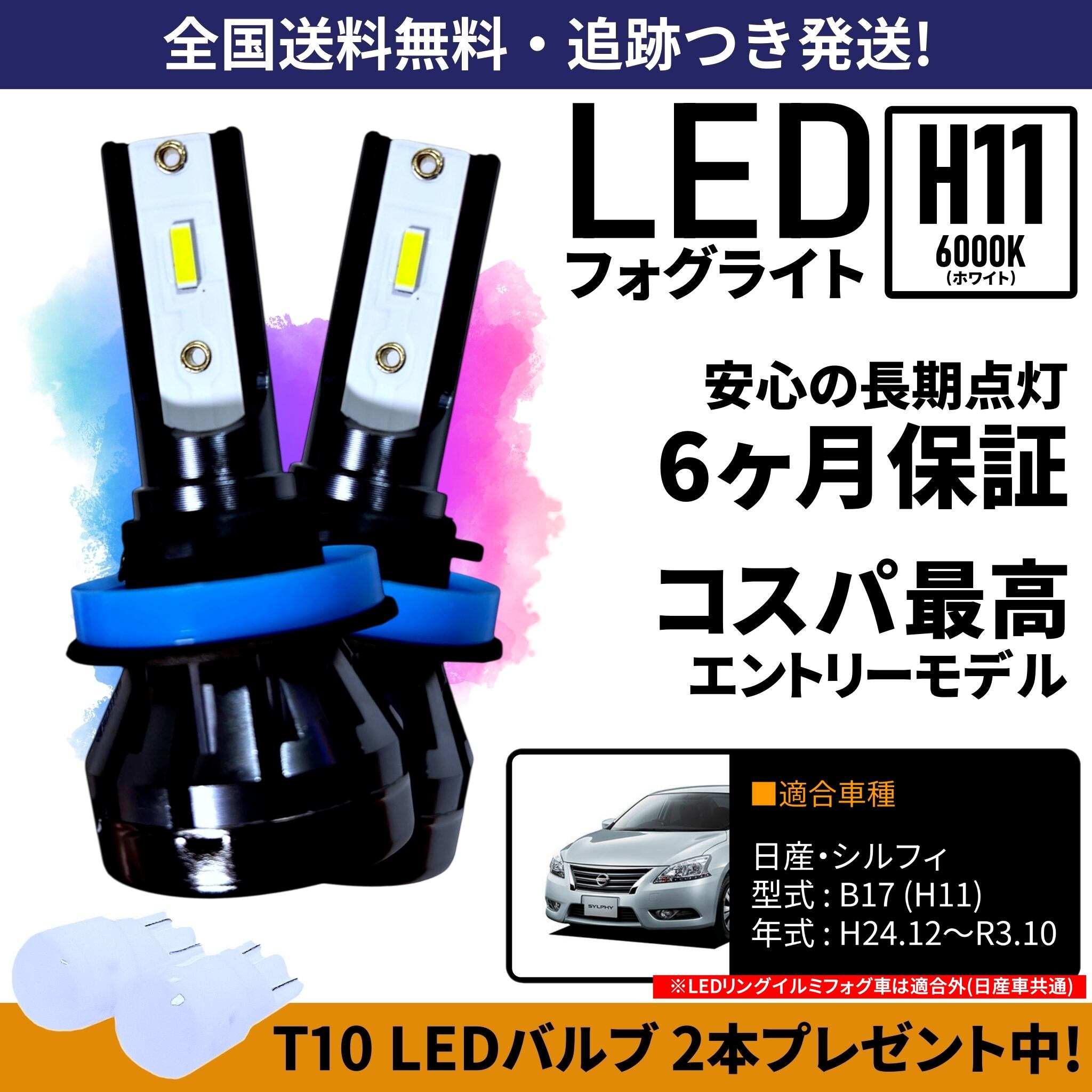 【送料無料】日産 シルフィ B17 LED フォグライト フォグランプ H11 ホワイト 6000K 保証付き
