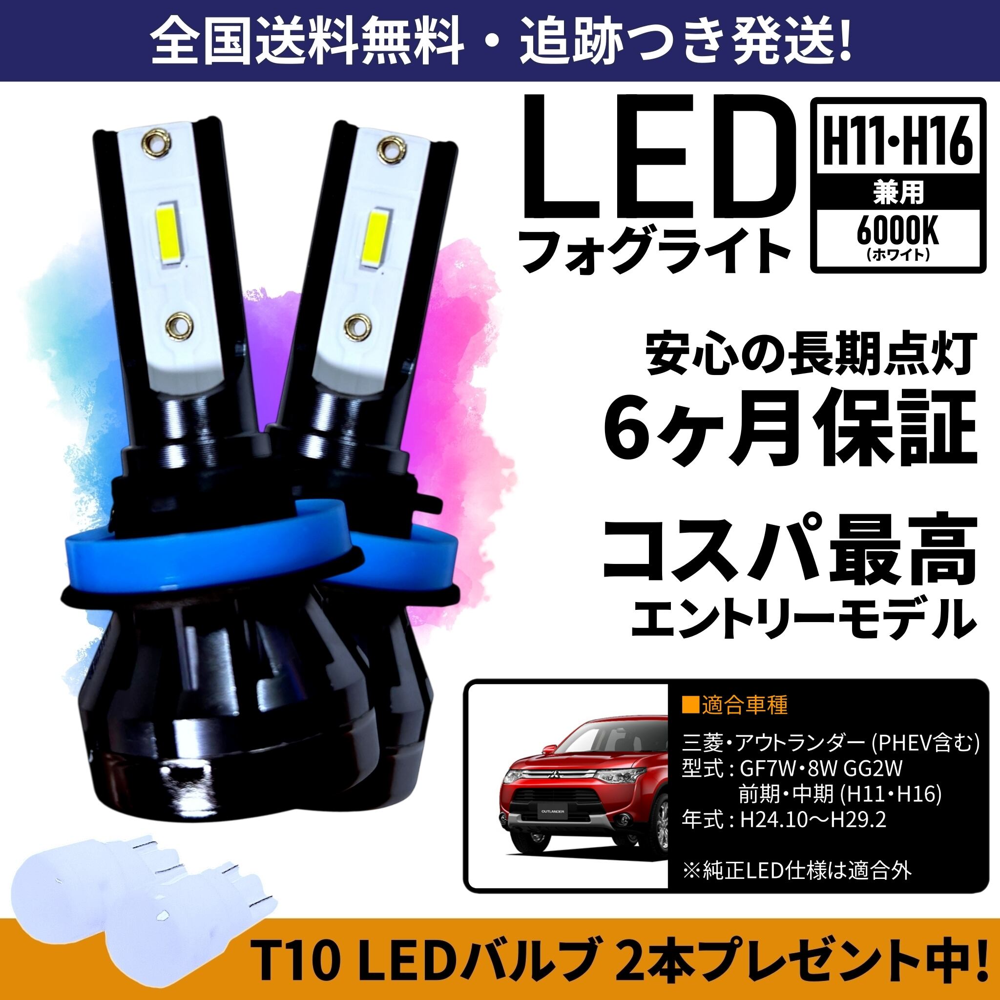 【送料無料】三菱 アウトランダー アウトランダーPHEV GF7W GF8W GG2W 前期・中期 LED フォグライト フォグランプ H11 H16 ホワイト 6000K 保証付き