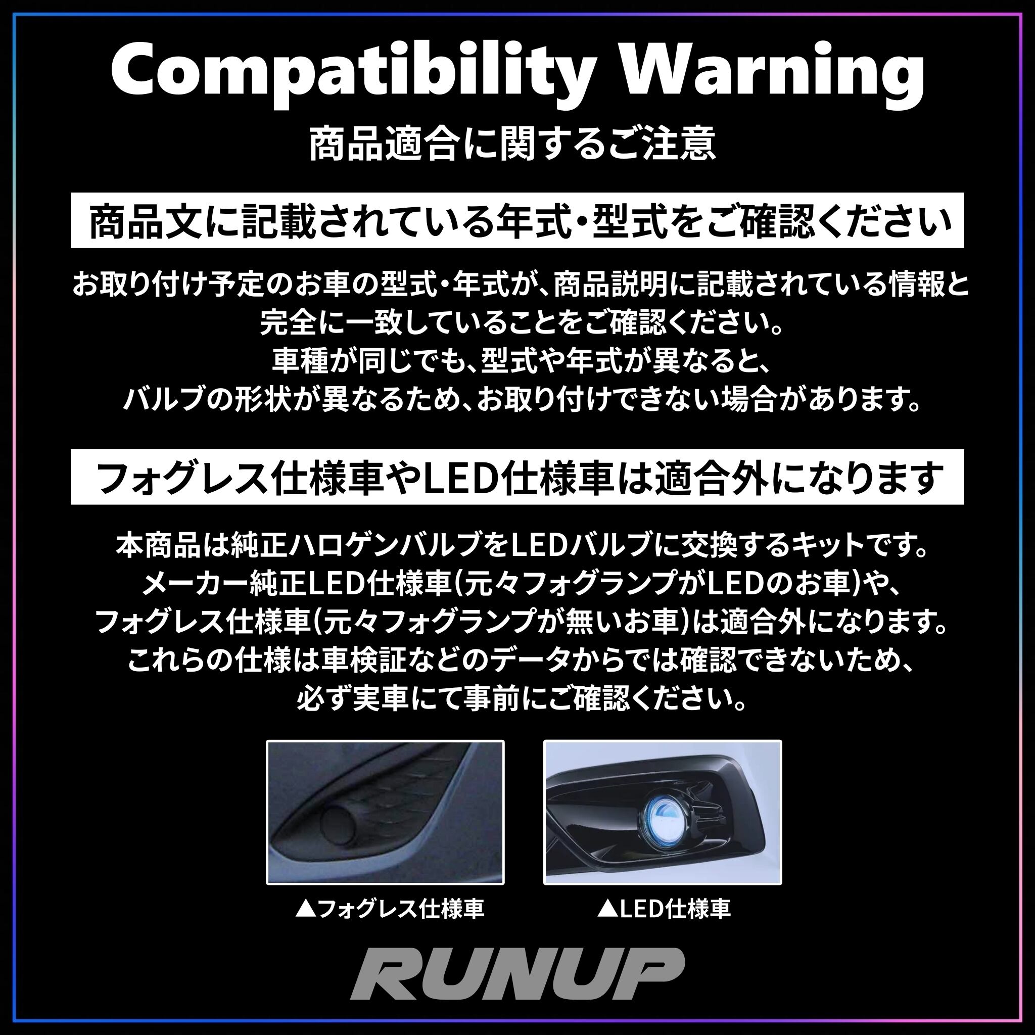 (純正LEDフォグランプ仕様車・フォグレス仕様車は装着できません。)