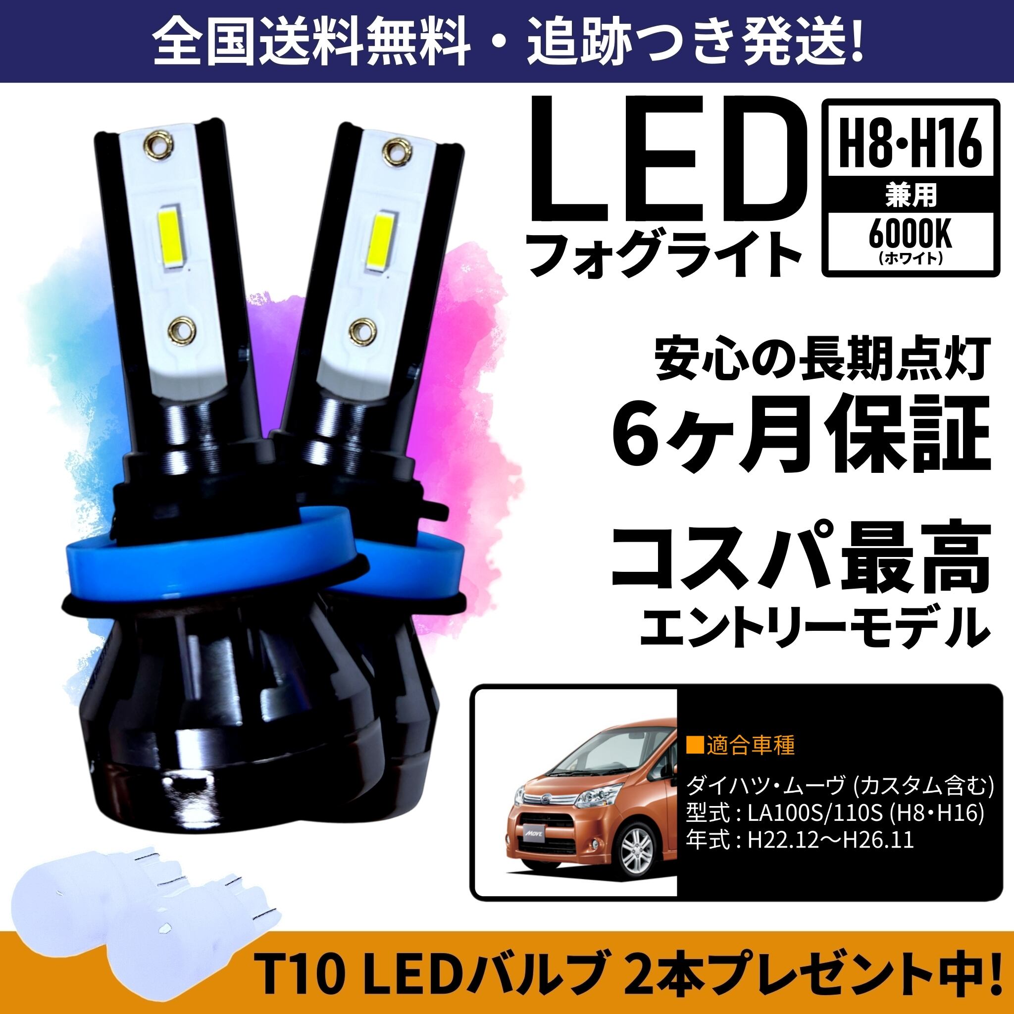 【送料無料】ダイハツ ムーヴ LA100S LA110S LED フォグライト フォグランプ H8 H16 ホワイト 6000K 保証付き