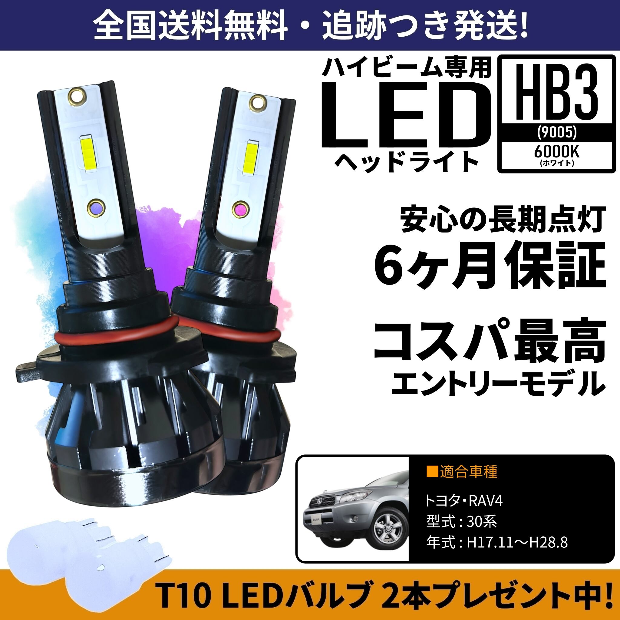 【送料無料】 トヨタ RAV4 30系 ハイビーム HB3 LED ヘッドライト ホワイト 6000K 保証つき