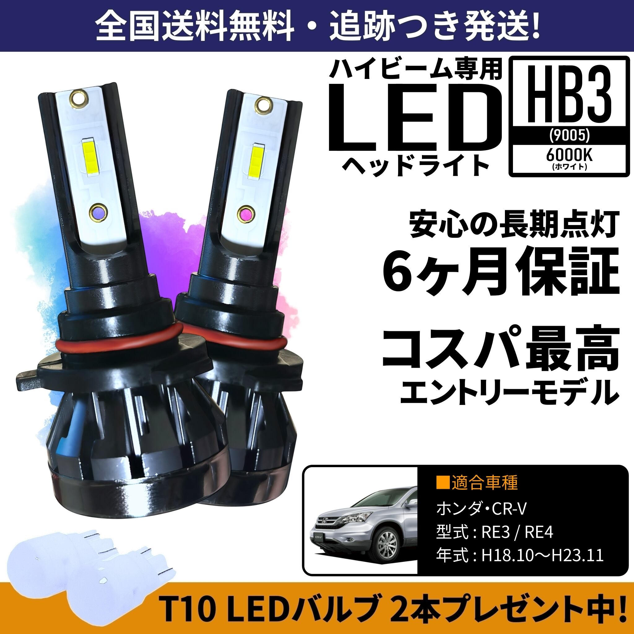 【送料無料】 ホンダ CR-V RE3 RE4 ハイビーム HB3 LED ヘッドライト ホワイト 6000K 保証つき