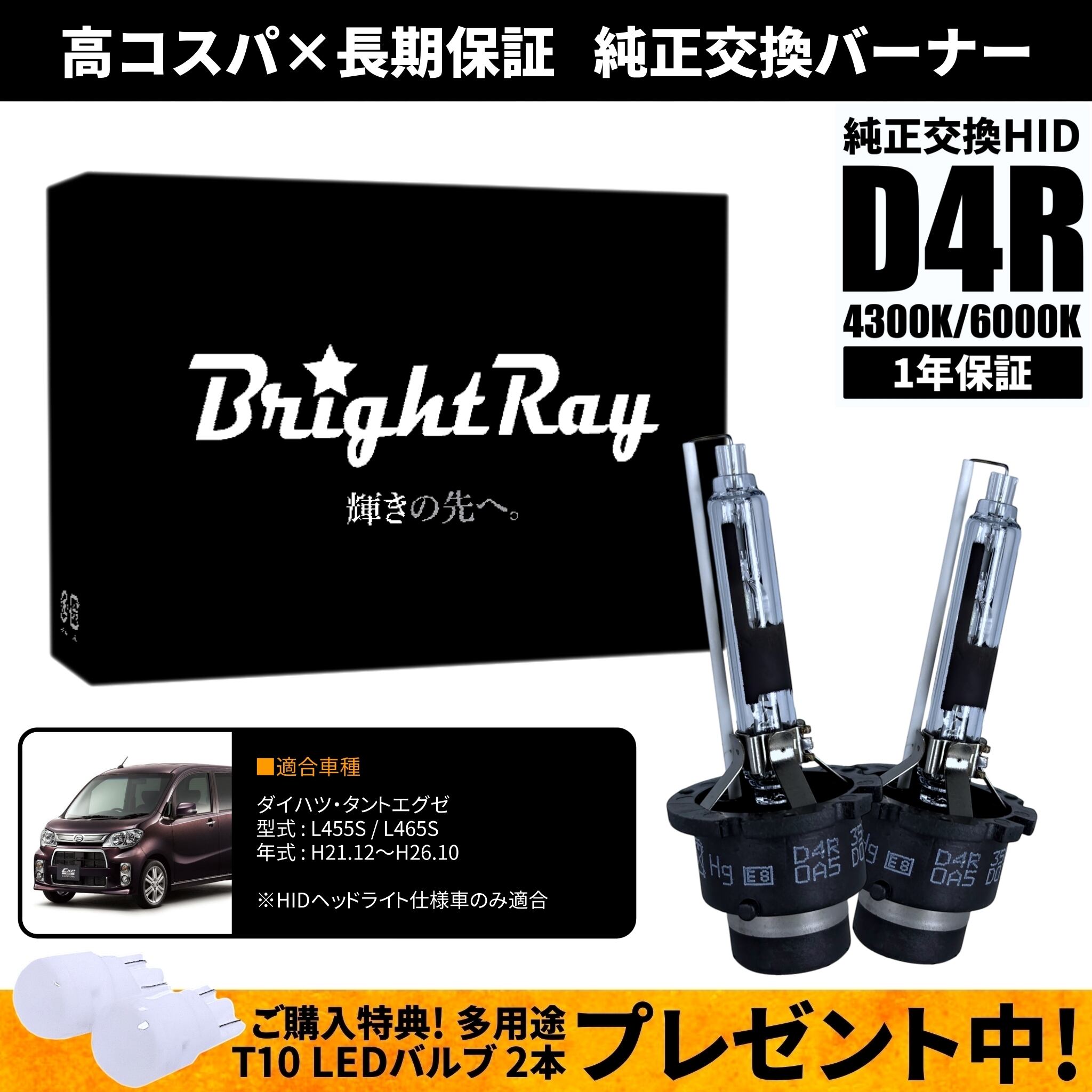 BrightRay D4R HIDバルブ 1年保証 ダイハツ タントエグゼ L455S L465S 車検対応 純正交換 バーナー 4300K 6000K ヘッドライト