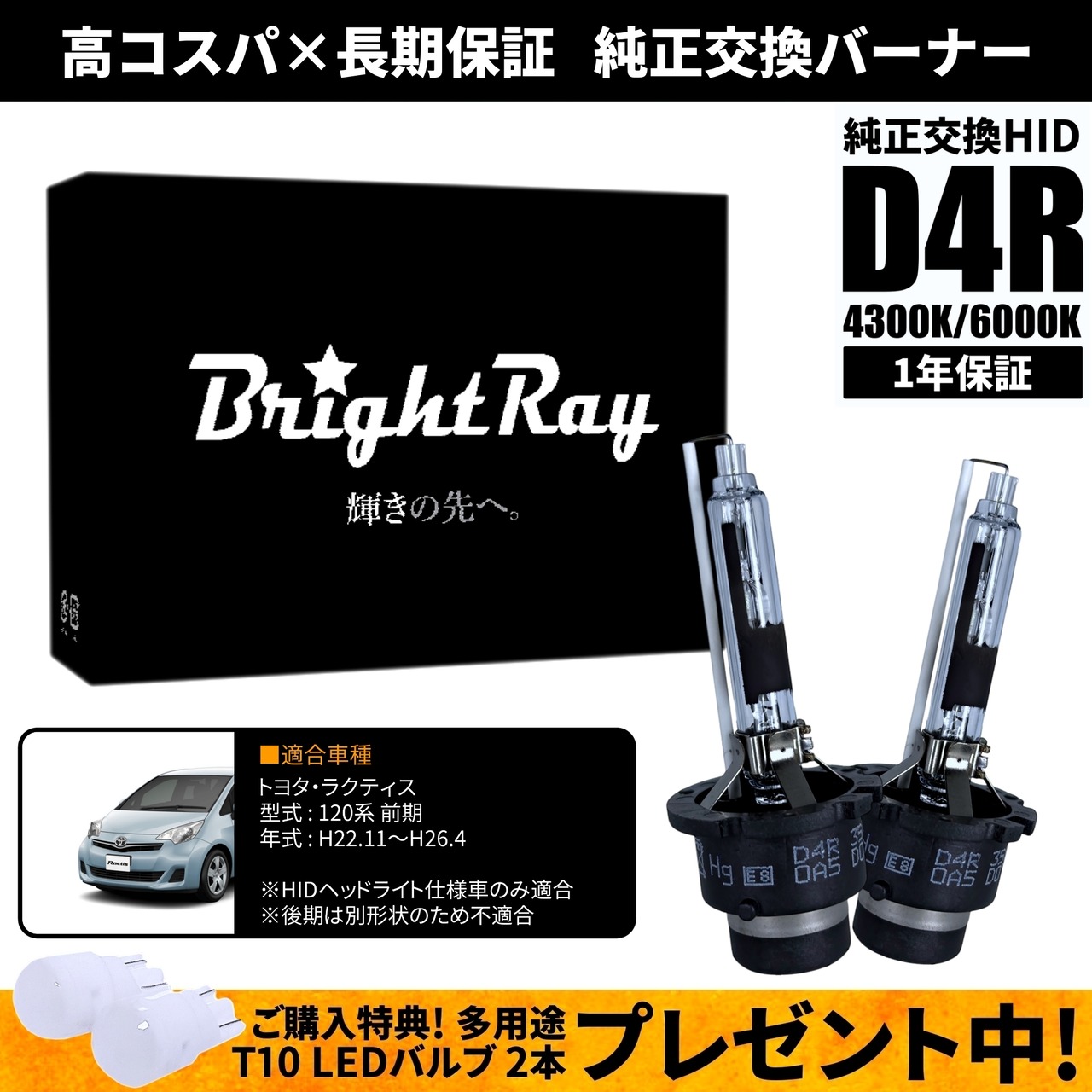BrightRay D4R HIDバルブ 1年保証 トヨタ ラクティス 120系 前期 車検対応 純正交換 バーナー 4300K 6000K ヘッドライト