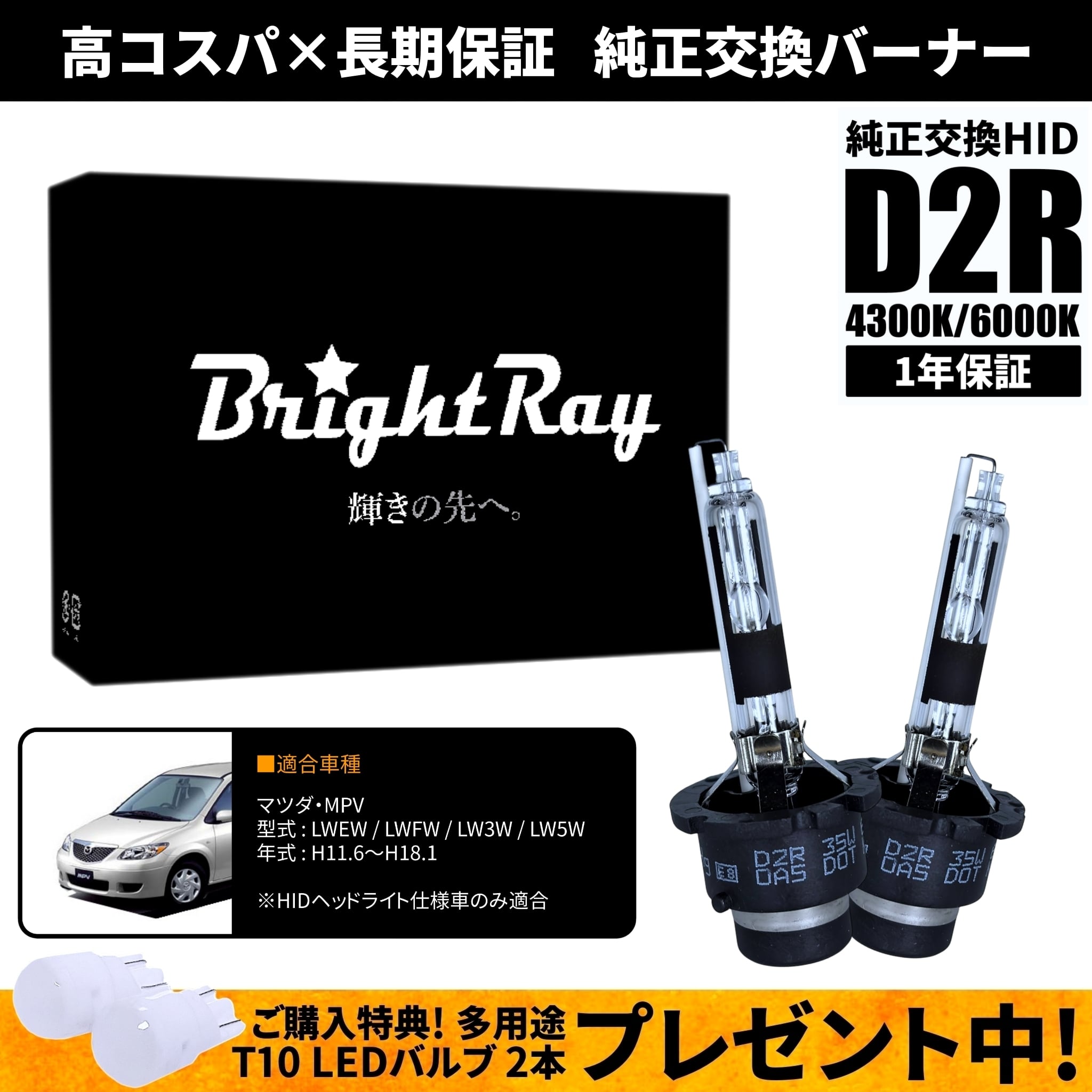 BrightRay D2R HIDバルブ 1年保証 マツダ MPV LWEW LWFW LW3W LW5W 車検対応 純正交換 バーナー 4300K 6000K ヘッドライト