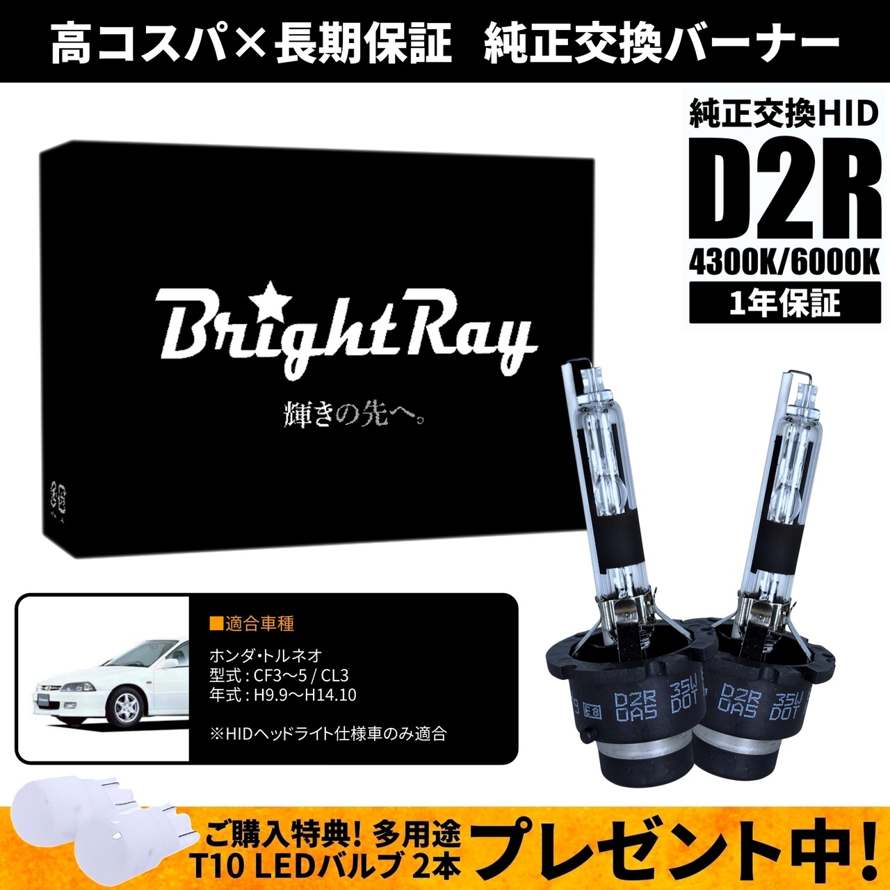 BrightRay D2R HIDバルブ 1年保証 ホンダ トルネオ CF3 CF4 CF5 CL3 車検対応 純正交換 バーナー 4300K 6000K ヘッドライト