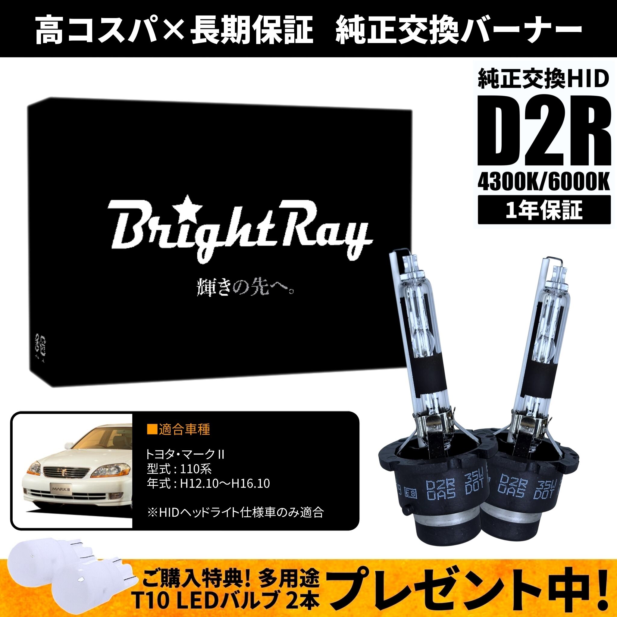 BrightRay D2R HIDバルブ 1年保証 トヨタ マーク?U マーク2 110系 車検対応 純正交換 バーナー 4300K 6000K ヘッドライト