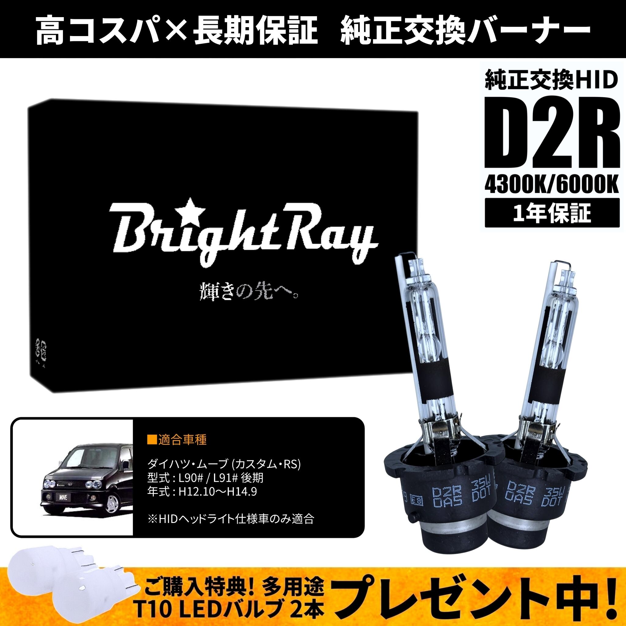 BrightRay D2R HIDバルブ 1年保証 ダイハツ ムーヴ (カスタム・RS) L900系 L910系 後期 車検対応 純正交換 バーナー 4300K 6000K ヘッドライト