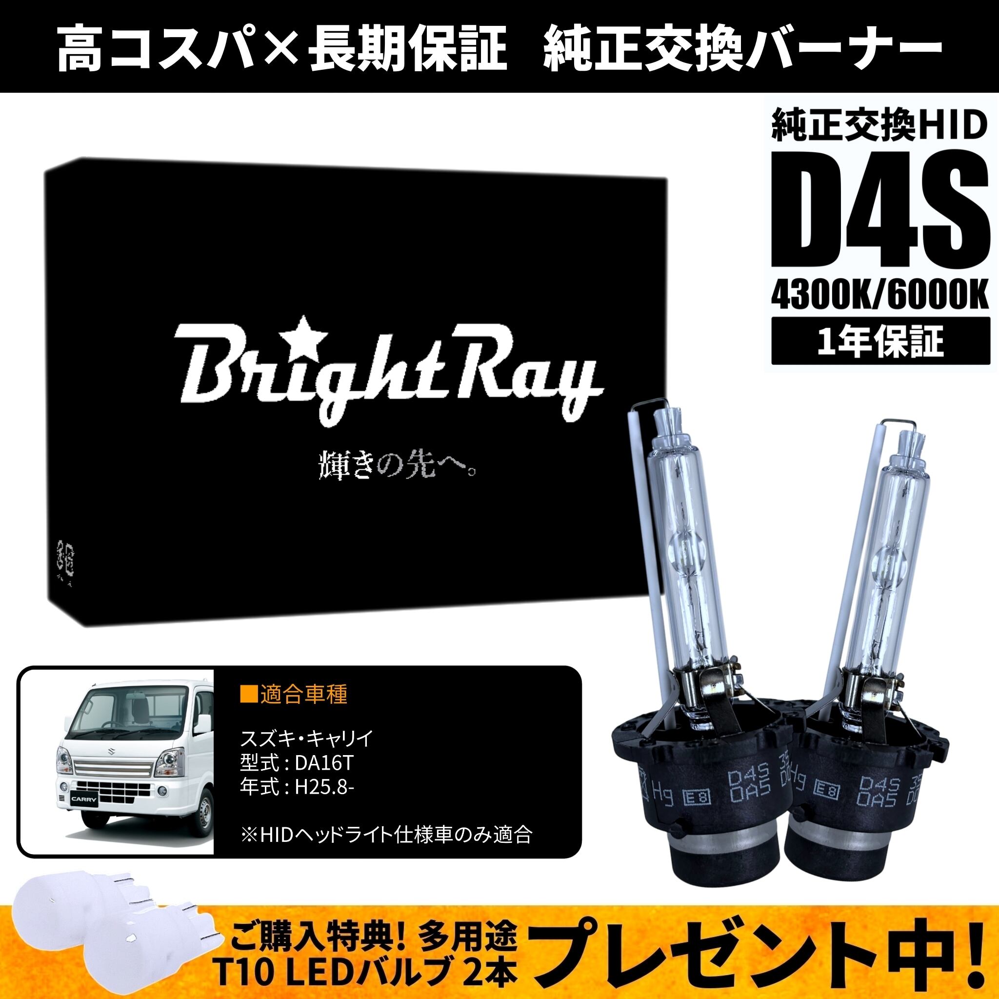 BrightRay D4S HIDバルブ 1年保証 スズキ キャリイ DA16T 車検対応 純正交換 バーナー 4300K 6000K ヘッドライト