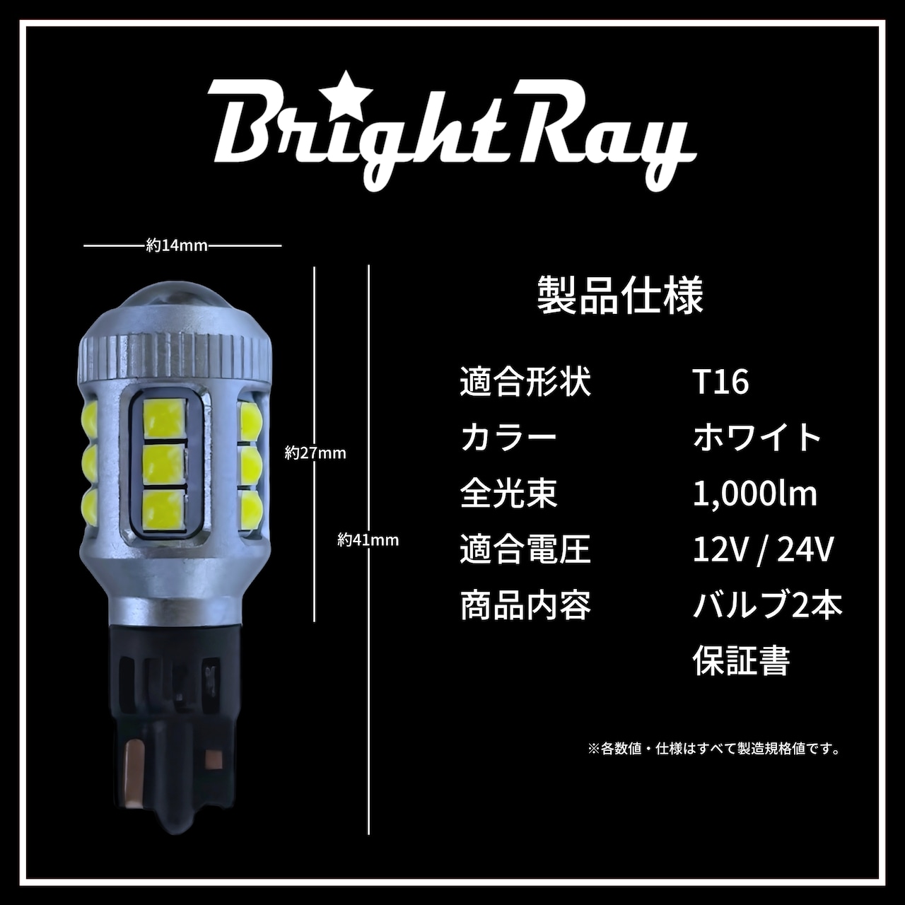 1年保証付き・BrightRayバックランプ専用LEDバルブ!(2個入り)