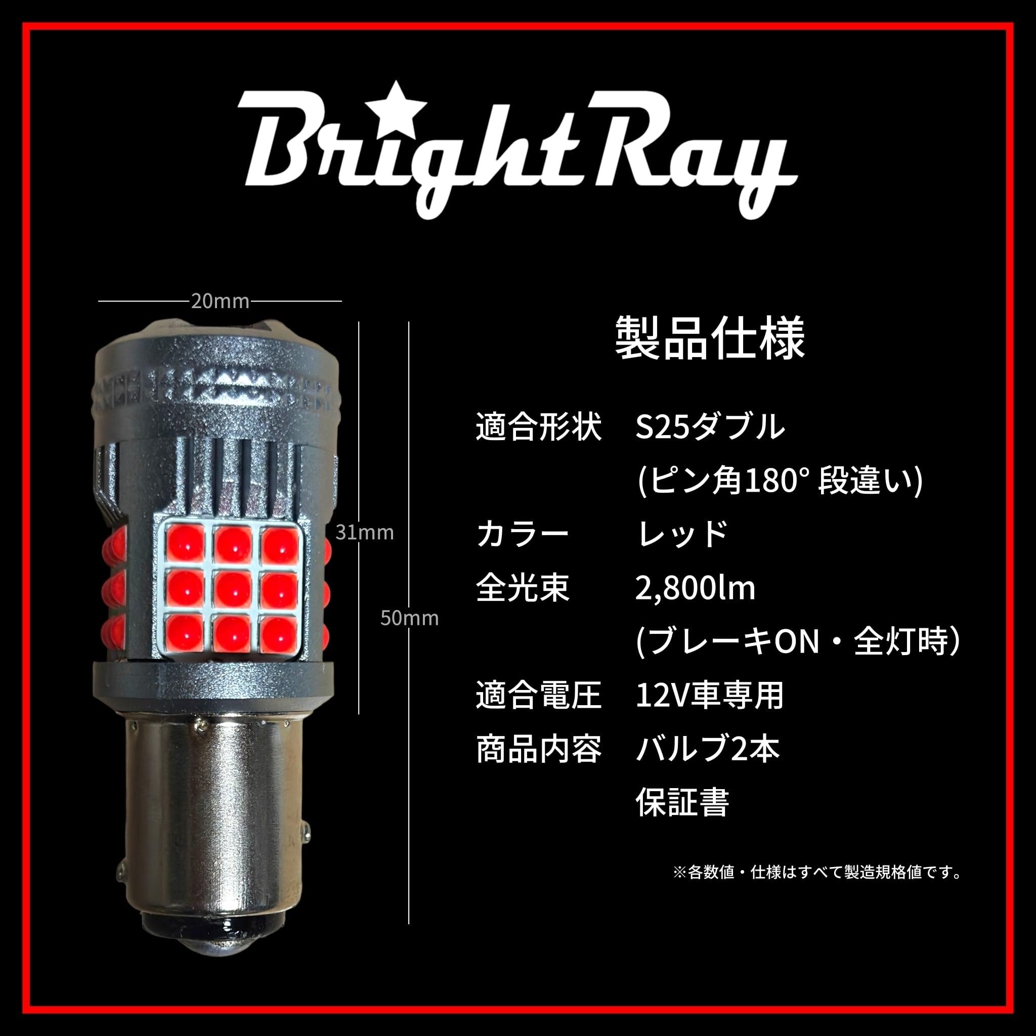 S25 ダブル スズキ ワゴンR MH23S H20.9~H24.8 BrightRay ブレーキランプ テールランプ ブレーキ球 赤 レッド 2個 1年保証