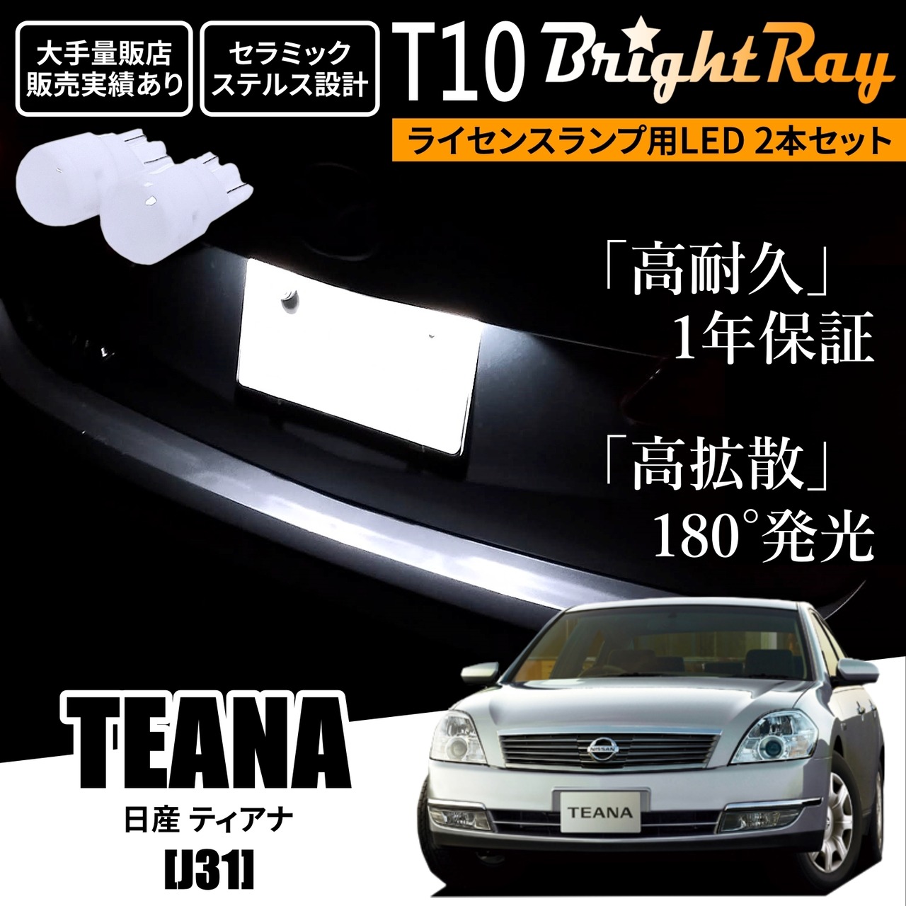 送料無料 日産 ティアナ J31 BrightRay T10 LED バルブ 1年保証 ナンバー灯 ライセンスランプ ウェッジ球 ホワイト