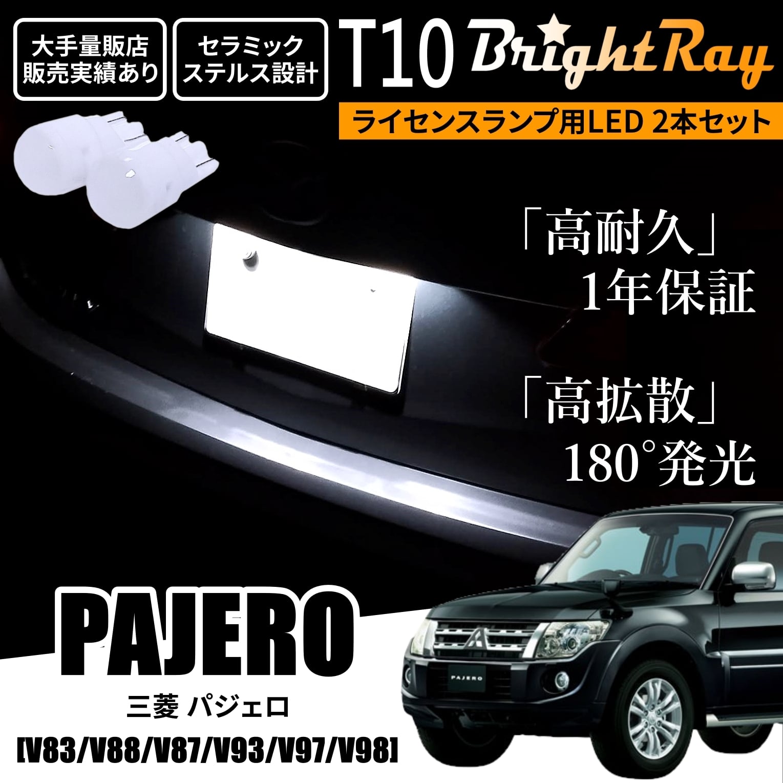 送料無料 三菱 パジェロ V83 V87 V88 V93 V97 V98 BrightRay T10 LED バルブ 1年保証 ナンバー灯 ライセンスランプ ウェッジ球 ホワイト