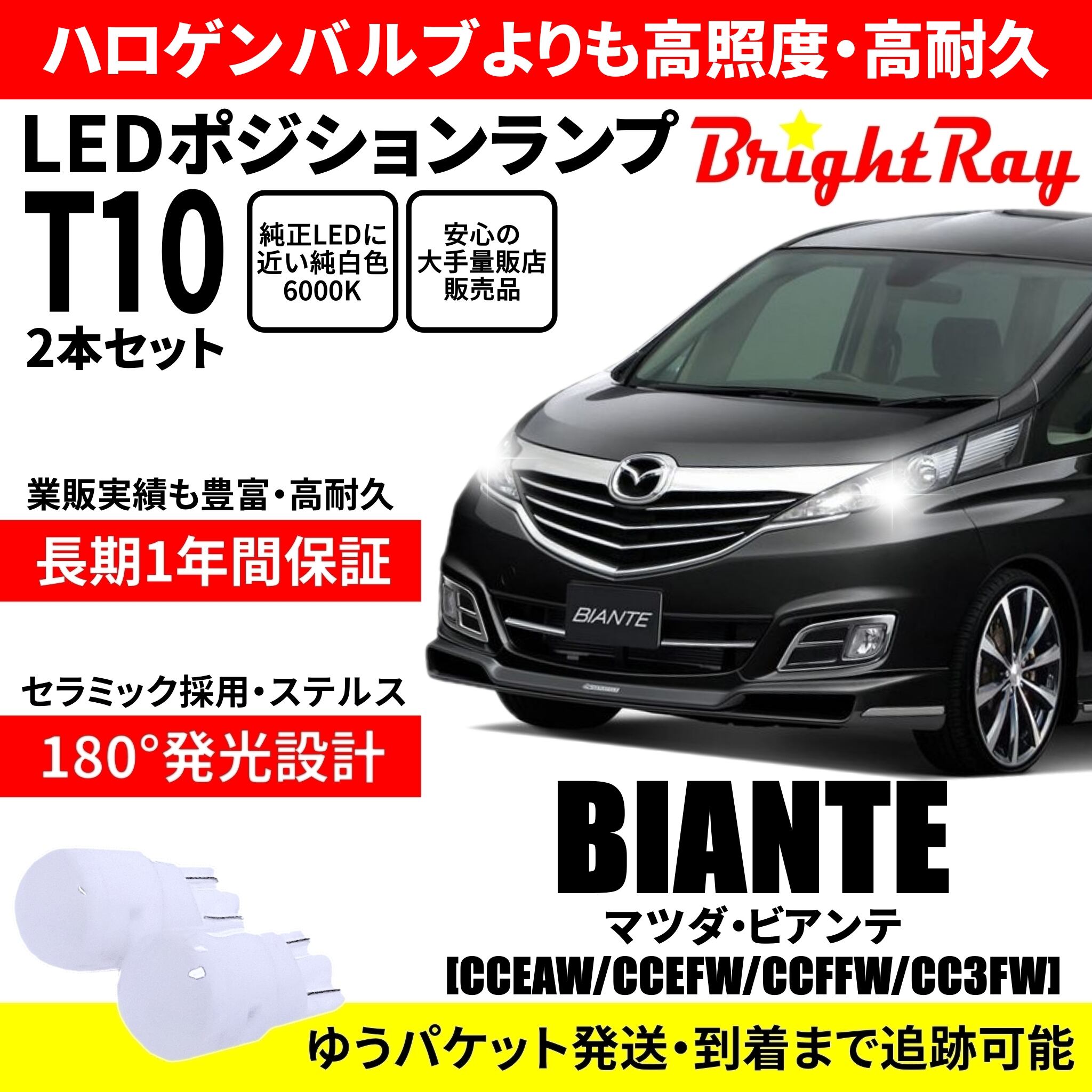 送料無料 1年保証 マツダ ビアンテ CCEAW CCEFW CCFFW CC3FW BrightRay T10 LEDバルブ ポジションランプ 車幅灯 車検対応 2本セット 6000K