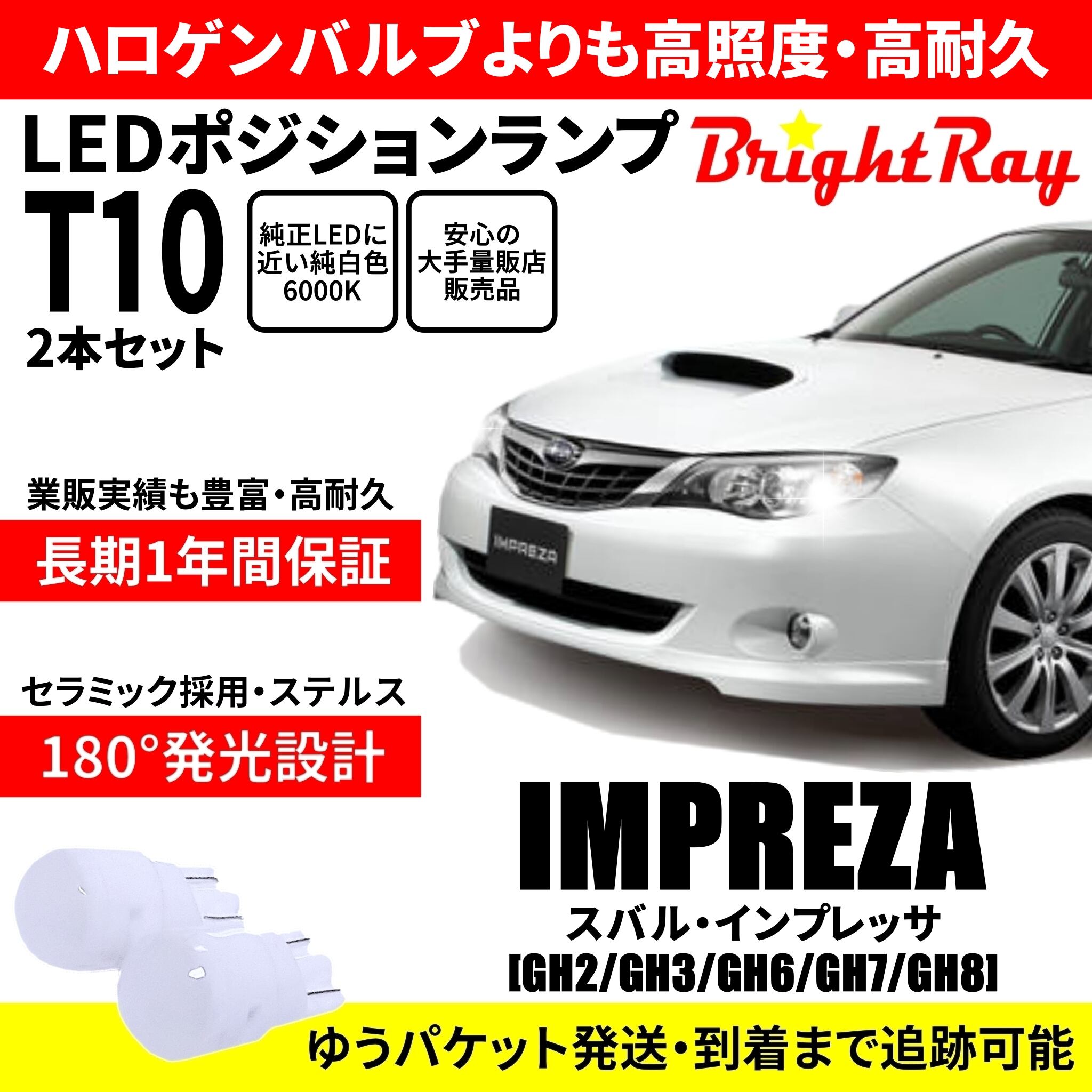 送料無料 1年保証 スバル インプレッサ GH系 GH2 GH3 GH6 GH7 GH8 BrightRay T10 LEDバルブ ポジションランプ 車幅灯 車検対応 2本セット