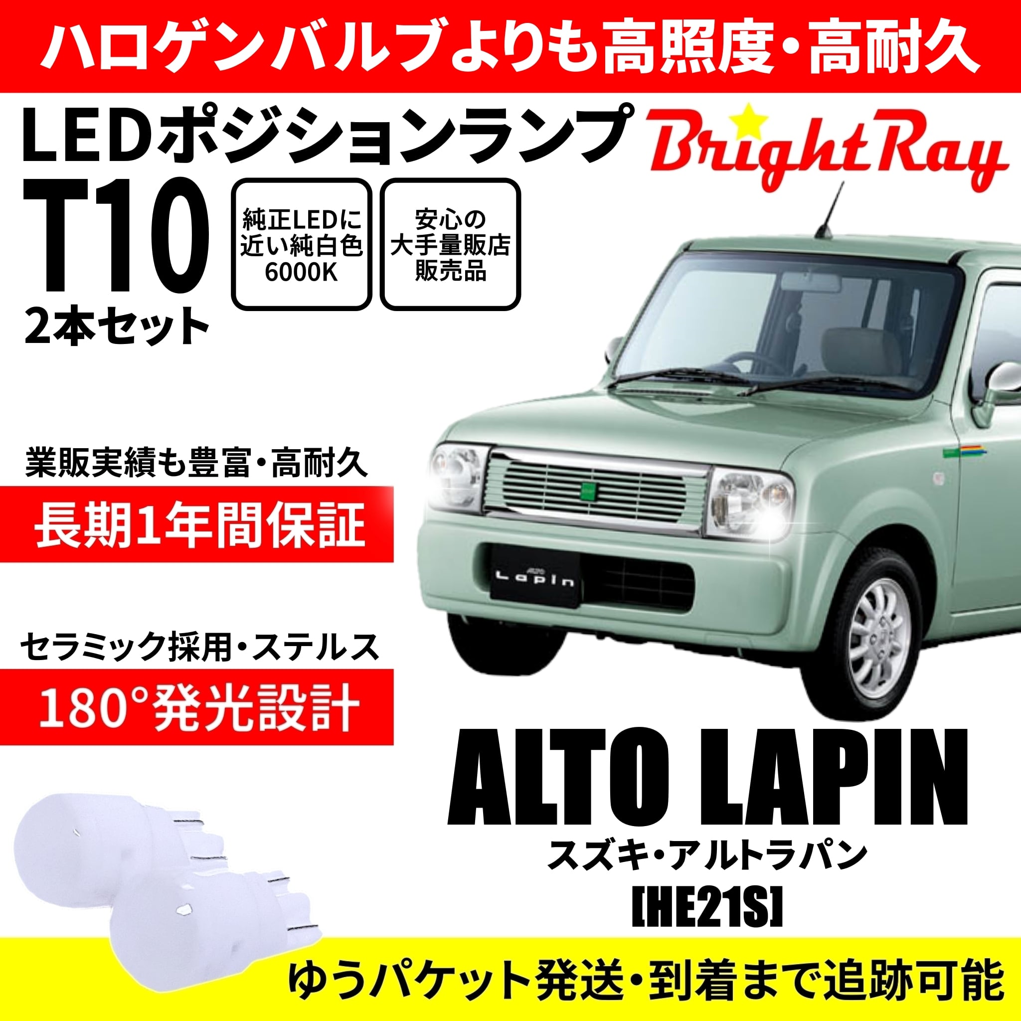 送料無料 1年保証 スズキ アルトラパン HE21S BrightRay T10 LED バルブ ポジションランプ 車幅灯 2本セット 車検対応 ホワイト