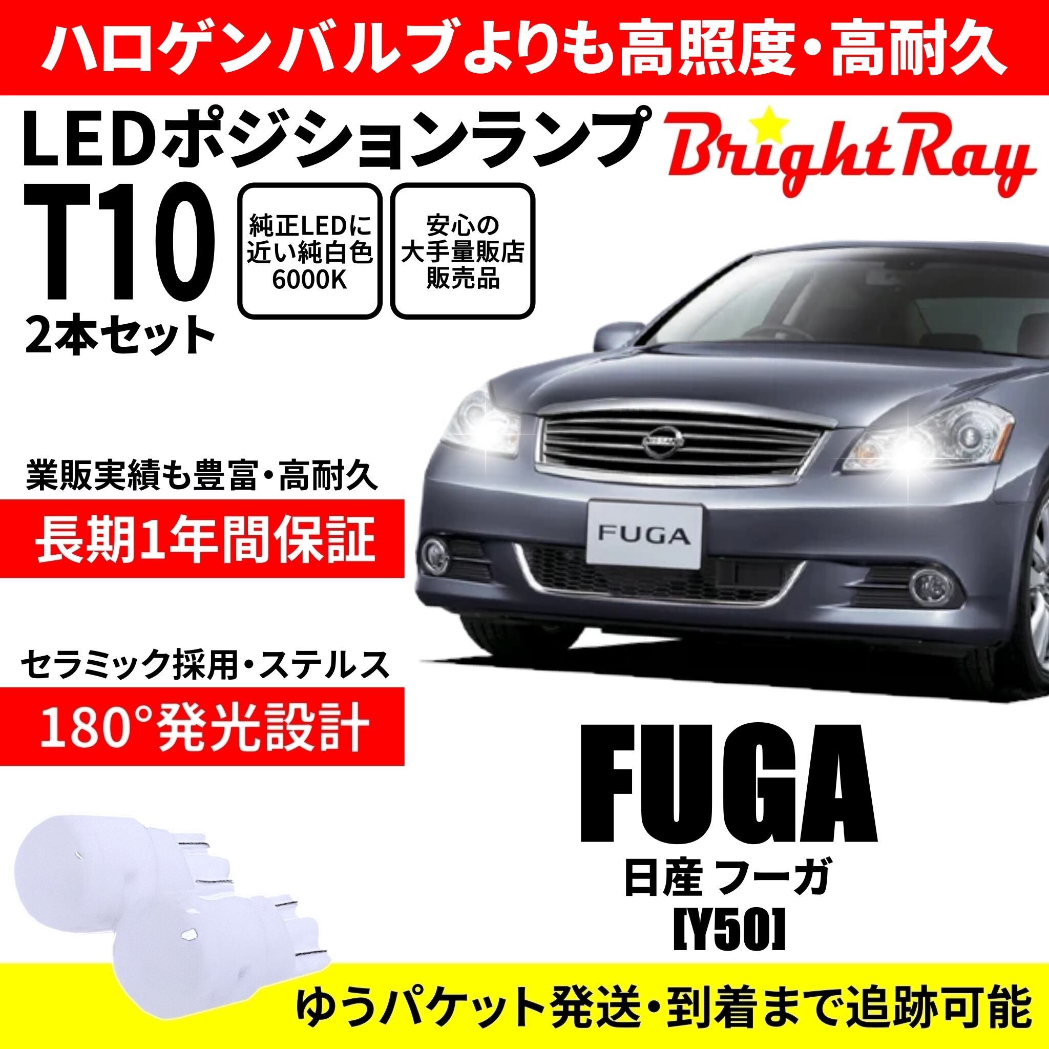 送料無料 1年保証 日産 フーガ Y50 BrightRay T10 LED バルブ ポジションランプ 車幅灯 2本セット 車検対応