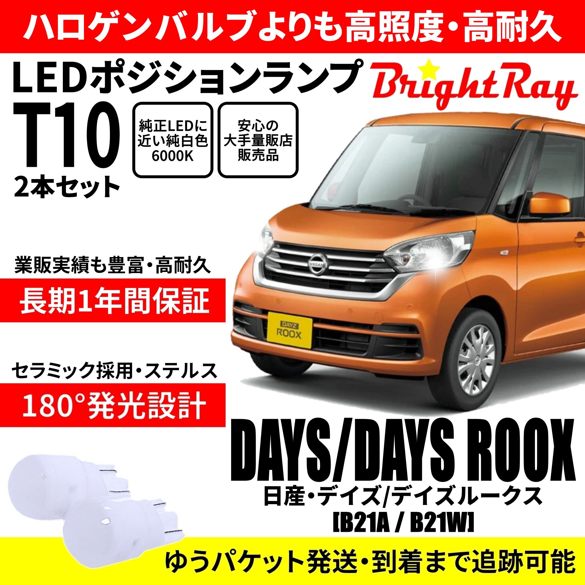 送料無料 1年保証 日産 デイズ デイズルークス B21A B21W BrightRay T10 LEDバルブ ポジションランプ 車幅灯 車検対応 2本セット ホワイト