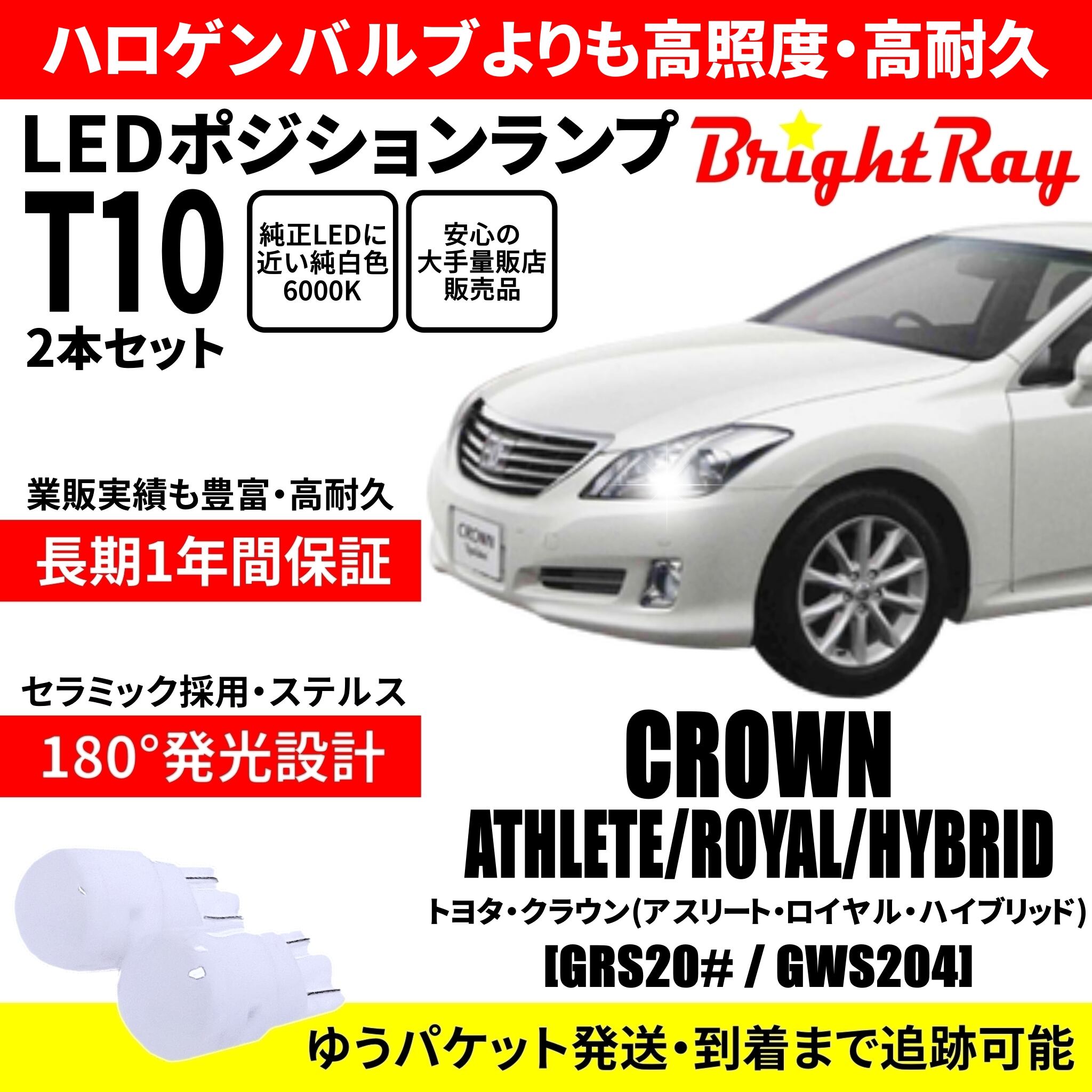 送料無料 1年保証 トヨタ クラウン 200系 アスリート ロイヤル ハイブリッド BrightRay T10 LED バルブ ポジションランプ 車幅灯 2本セット