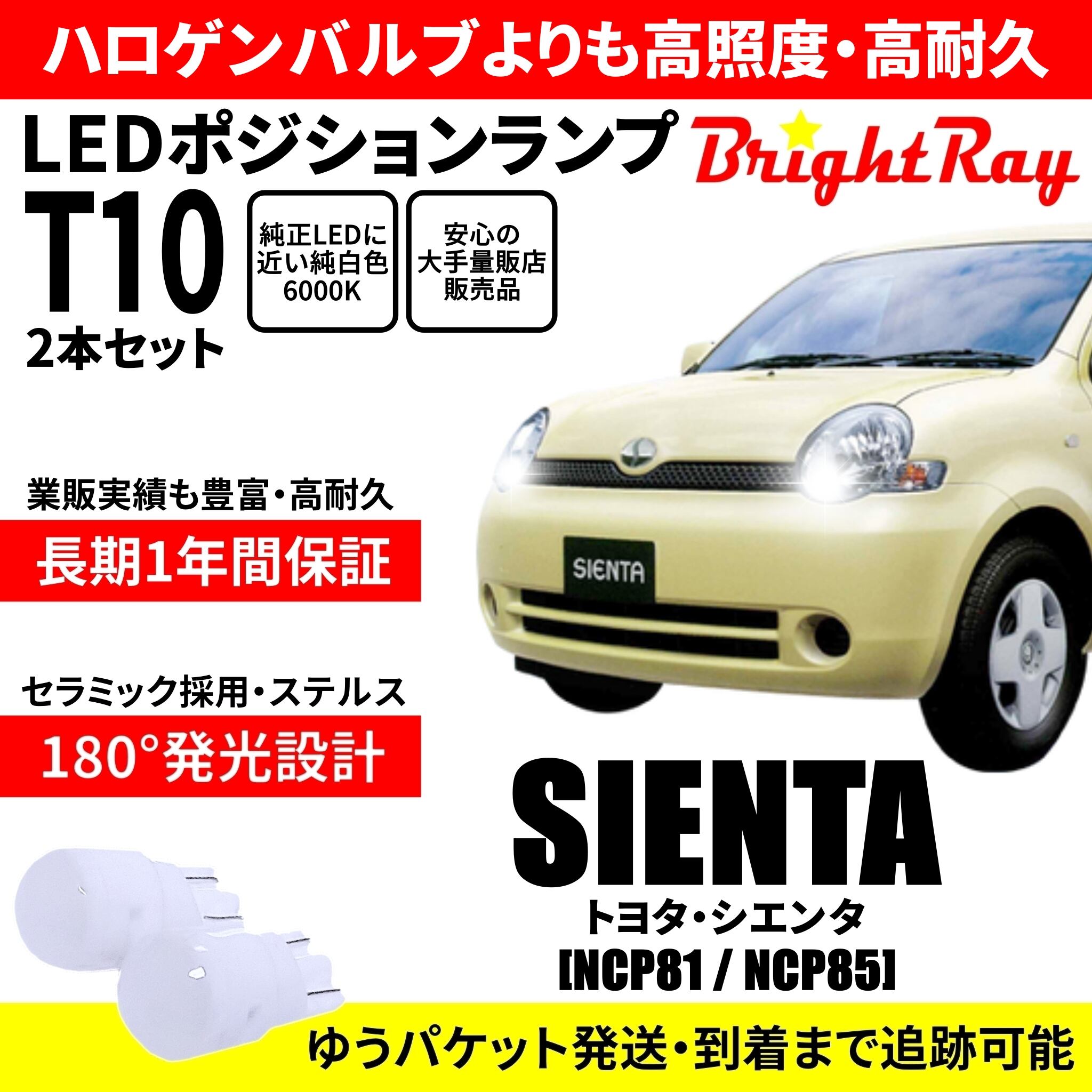 送料無料 1年保証 トヨタ シエンタ 80系 NCP81 NCP85 BrightRay T10 LED バルブ ポジションランプ 車幅灯 ウェッジ球 2本セット 車検対応