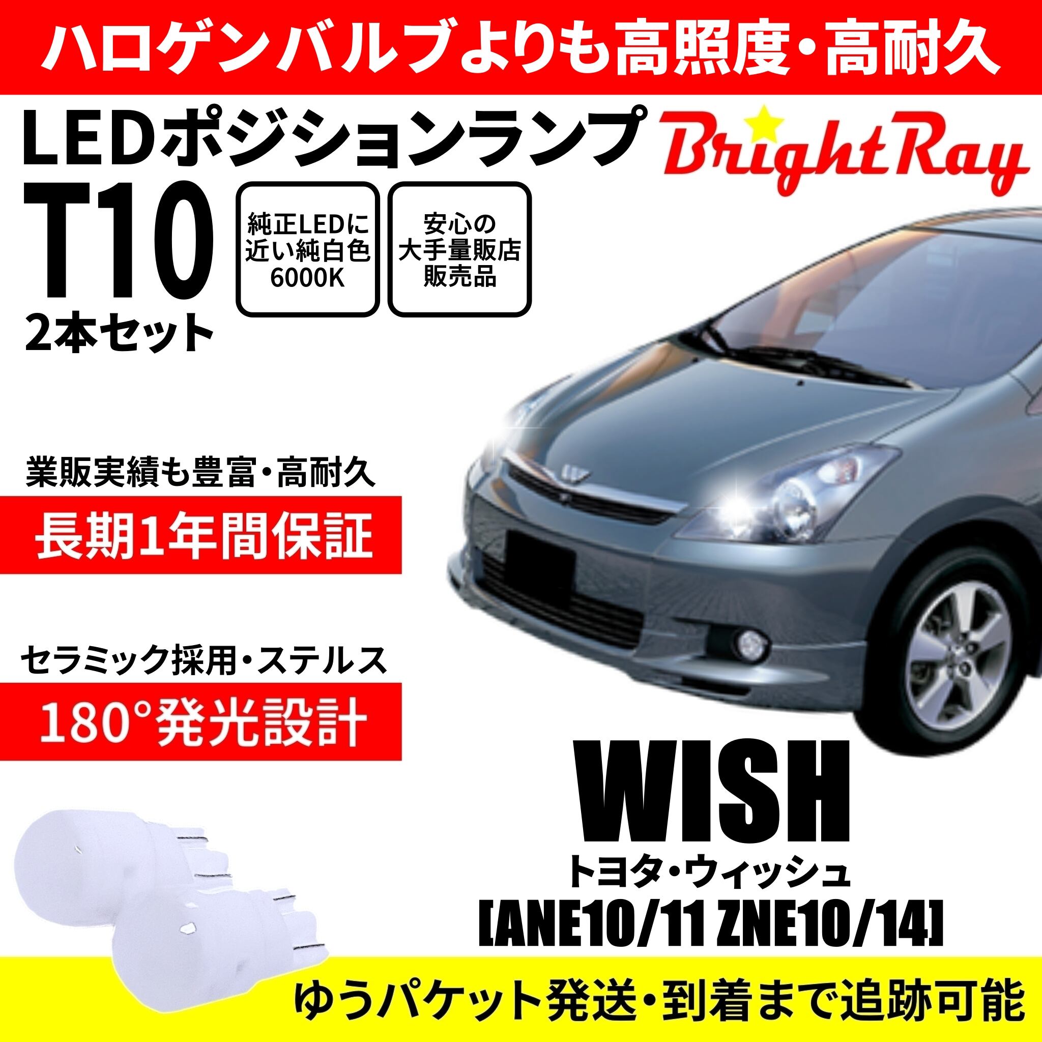 送料無料 1年保証 トヨタ ウィッシュ ANE10 ANE11 ZNE10 ZNE14 BrightRay T10 LED バルブ ポジションランプ 車幅灯 ウェッジ球 2本セット